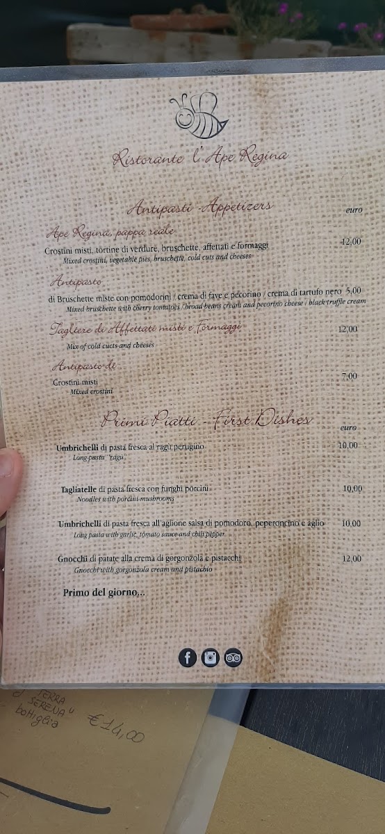 L'ape regina, nestled in the charming Via Perugia, 18, Monteleone d'Orvieto, Italy, is a delightful culinary gem. This restaurant radiates warmth with its friendly service and inviting atmosphere. Guests rave about the classic dishes, particularly the delectable semifreddo and exquisite pizzas, which showcase the essence of Italian cuisine. While the intimate space exudes old-school charm, some diners suggest enjoying meals outdoors, especially to savor breathtaking sunsets. Despite minor service hiccups, the quality and portions of food consistently impress. L'ape regina captivates with both flavor and ambiance, making it a must-visit for authentic Italian dining experiences.