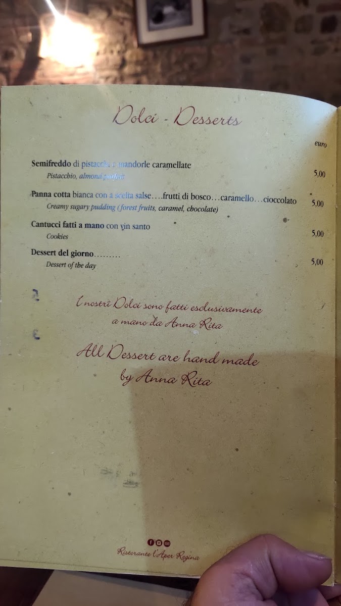 “ L'ape Regina is such a cute restaurant! Great atmosphere, friendly service, and tasty food. Their semifreddo as well as their pizza was excellent! ”